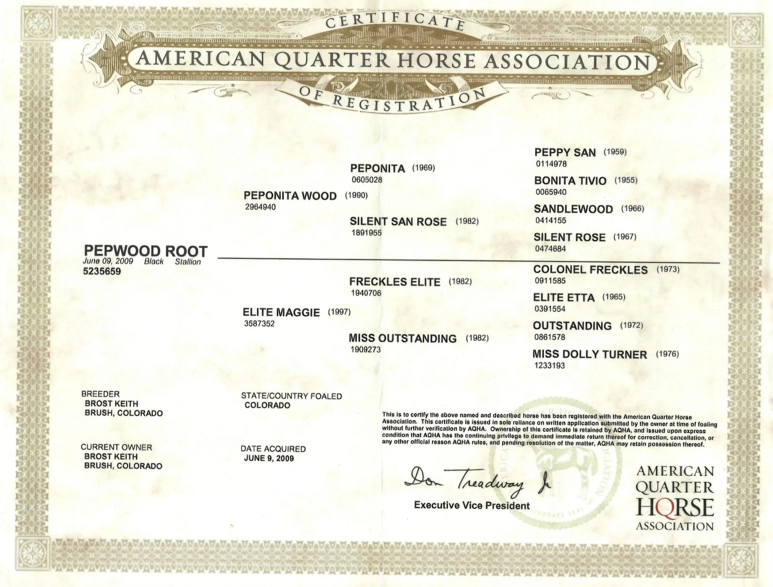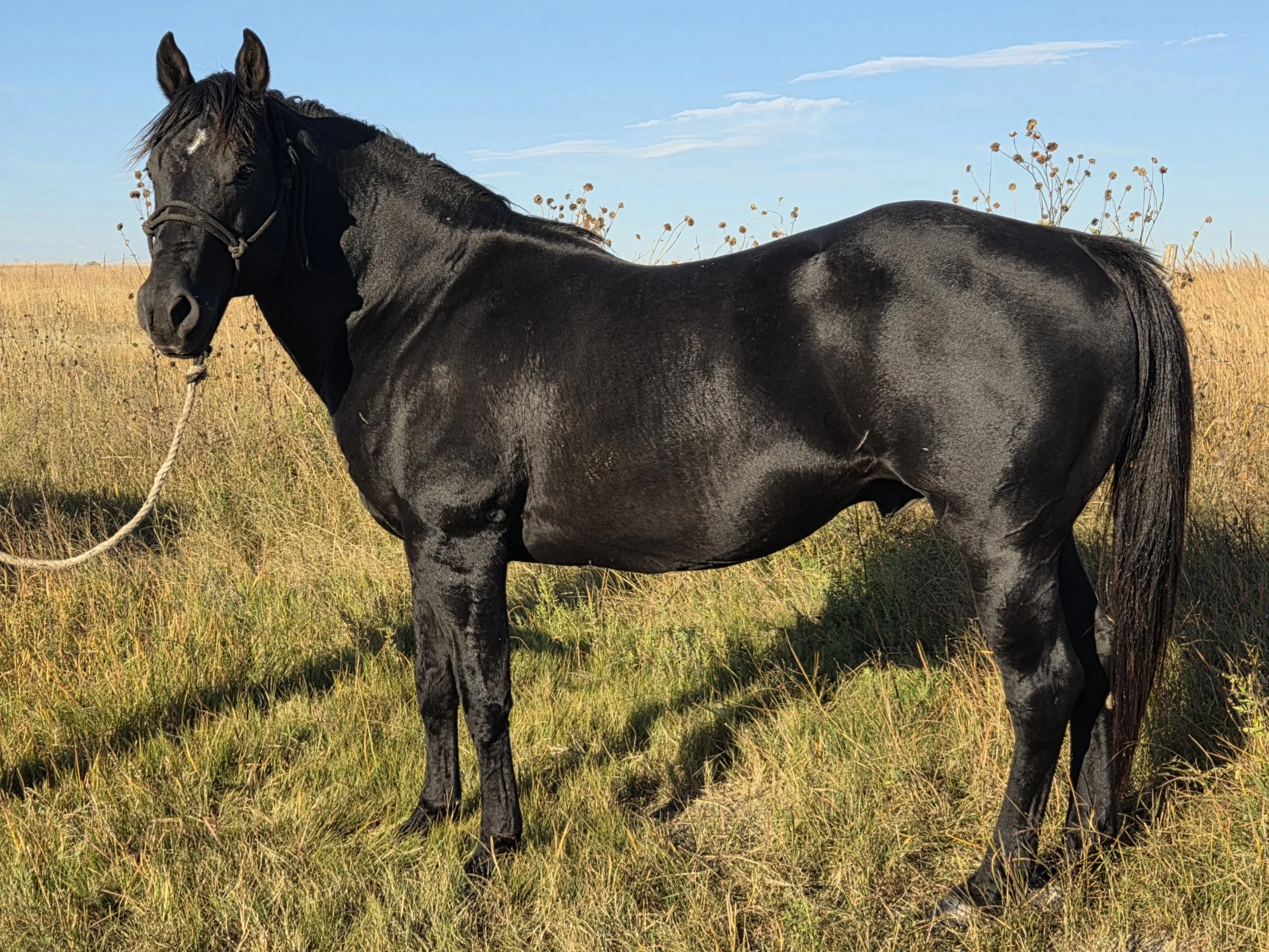 Pepwood Root is a jet black stallion sired by our foundation sire Peponita Wood and on the maternal side by our foundation sires Freckles Elite and Outstanding (maternal great-grand sire). He carries on the athletic ability, cow sense and good looks from his sires! He is muscular and stout with a nice head. We use him to cross on our Freckles Elite / Outstanding bred mares with amazing results. His colts are well built, deep bodied and athletic with calm dispositions. They have been very easy to train, and several sons have been sold as promising stud prospects.